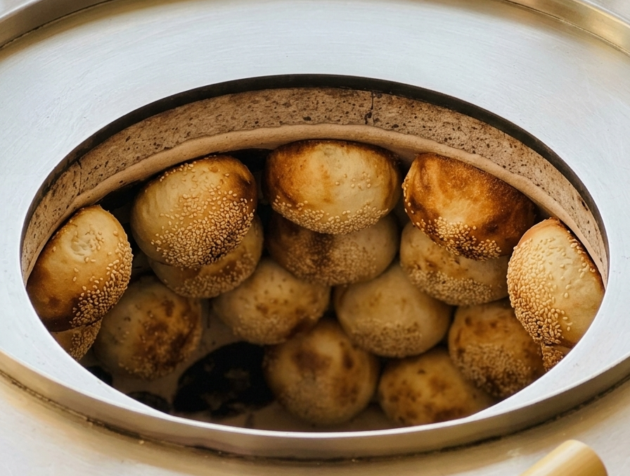 焼き上げられた胡椒餅が窯の上にずらっと並ぶ光景は圧巻です。